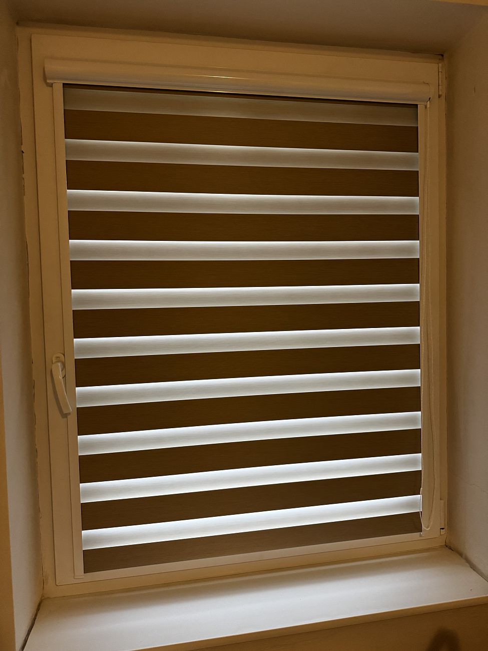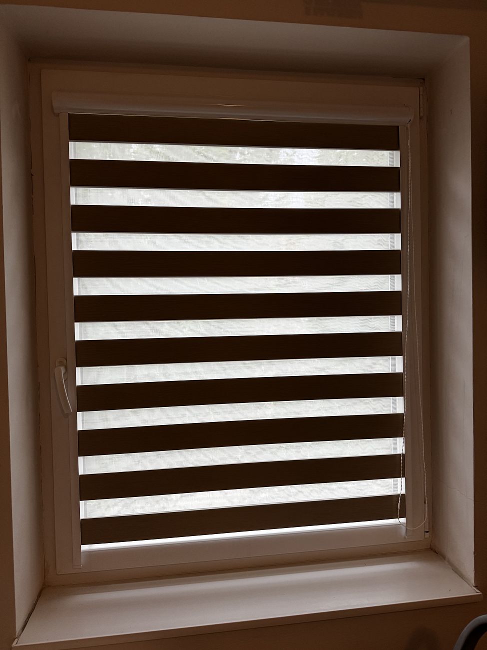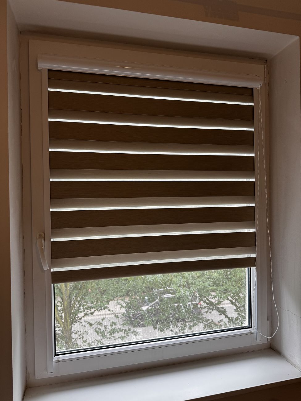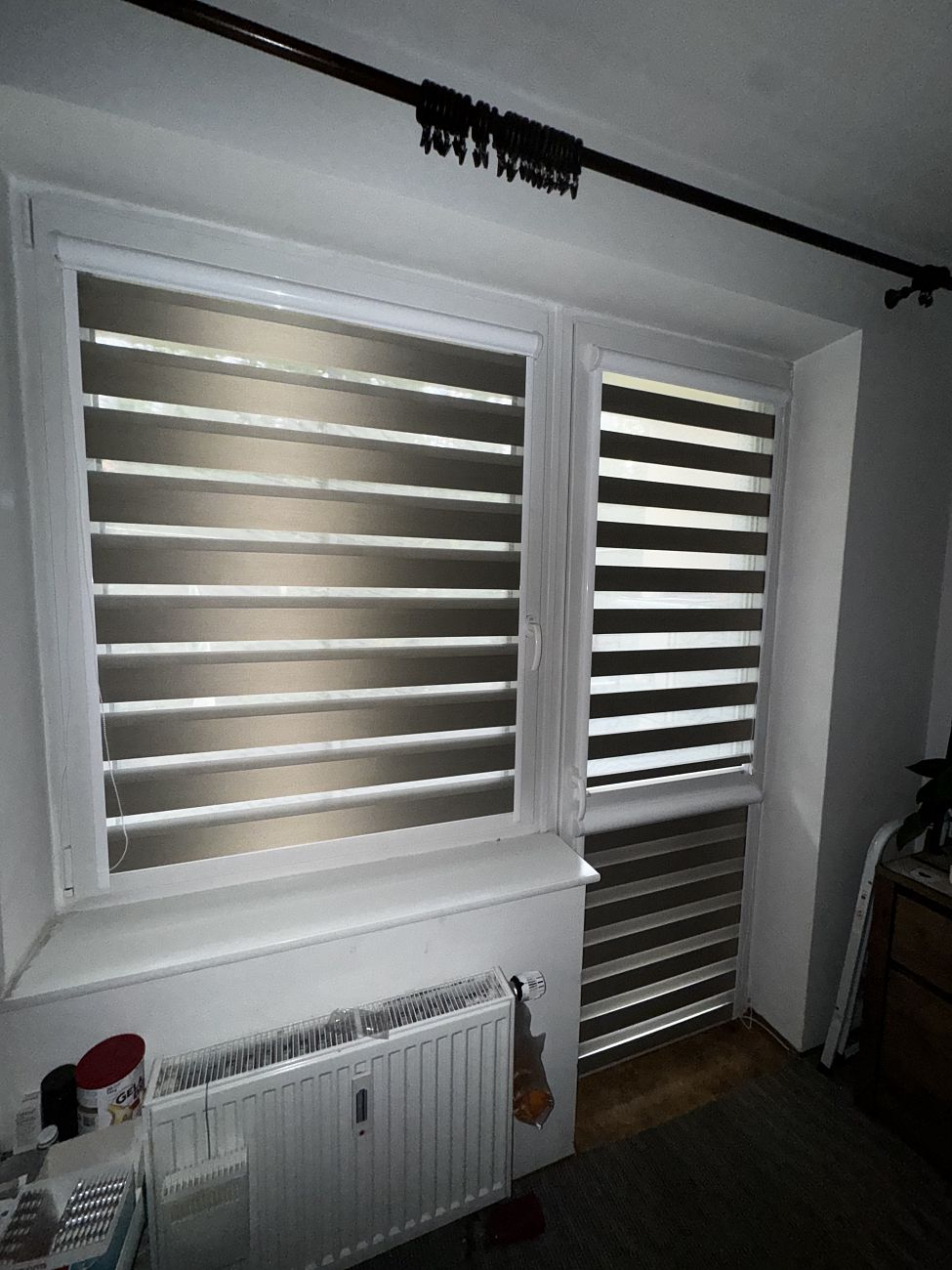 V červnu jsem realizoval zakázku v bytě v Nymburce, kde si zákazník přál nahradit původní, více než 20 let staré žaluzie modernějším a praktičtějším řešením. Volba padla na pět rolet den a noc, které díky střídajícím se pruhům průsvitné a plné látky umožňují perfektní regulaci světla. Zvolená pogumovaná látka duo rolet zároveň blokuje ostré západní slunce a poskytuje interiéru příjemné klima i během letních odpolední.