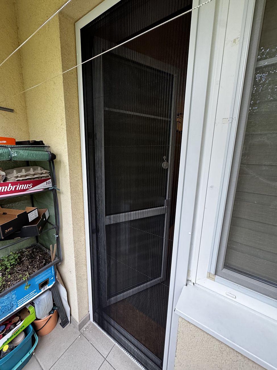 Součástí zakázky byla také montáž dveřní sítě proti hmyzu ve vstupu na lodžii. Vzhledem k malému prostoru nebylo možné použít klasickou pantovou síť proti hmyzu, proto jsme zvolili plisé síť proti hmyzu, která byla ideálním řešením. Je elegantní, nenápadná a pohodlná pro každodenní používání. Kombinace nového zastínění oken a plisované sítě proti hmyzu přinesla zákazníkovi moderní vzhled interiéru a maximální komfort – horké slunné dny bez přehřívání interiéru a větrání bez obtížného hmyzu.