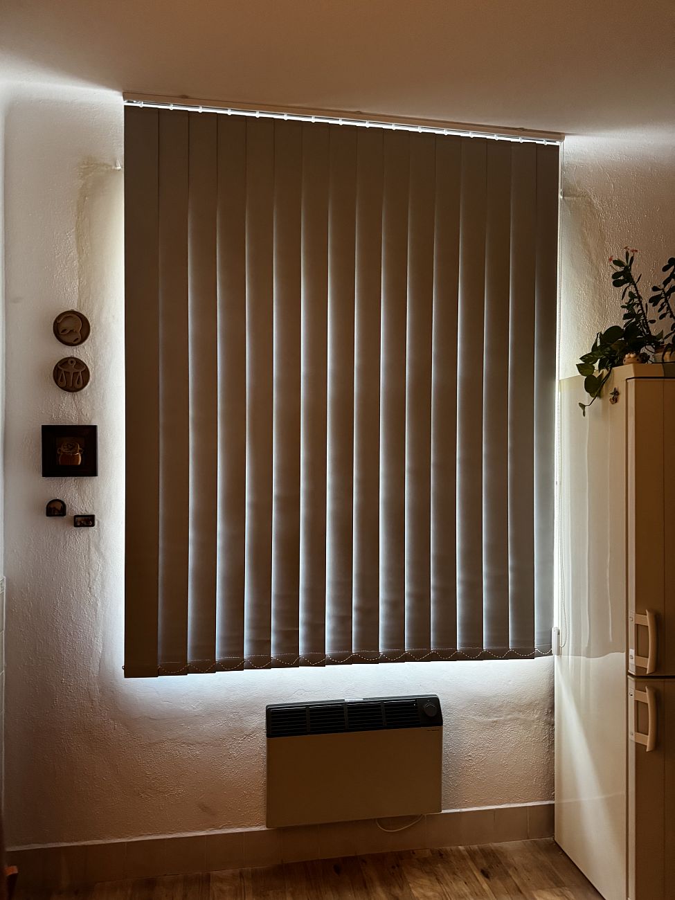 Zvolili jsme proto montáž vertikální žaluzie do stropu před okenní výklenek. Díky tomu se podařilo dodržet požadavky památkářů a zároveň účinně vyřešit problém se sluncem. Navíc jsme s klientem vybrali pogumované vertikální žaluzie, které se postarají o minimální průchodnost světla i příjemnou teplotu v interiéru. Výsledkem je funkční a estetické řešení, které respektuje charakter historické budovy a přináší potřebný komfort.